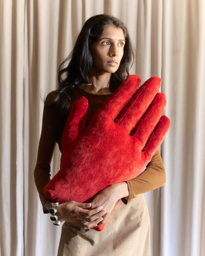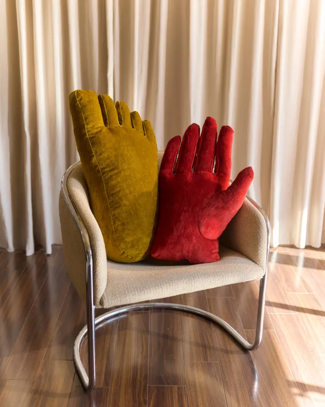 The Hand pillow is a play on the brand namesake, Sohn. Sohn (손) literally translates to “hand” in Korean. The Hand pillow blurs the line between soft sculpture and home good, utilizing intricate glove seaming to lend the pillow its lifelike shape. Sohn is designed in Brooklyn, New York by John Sohn.