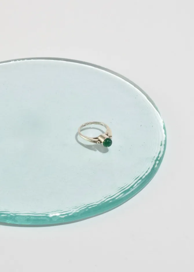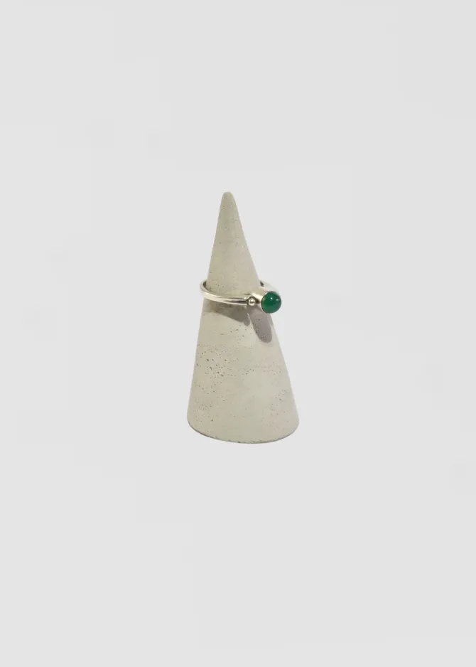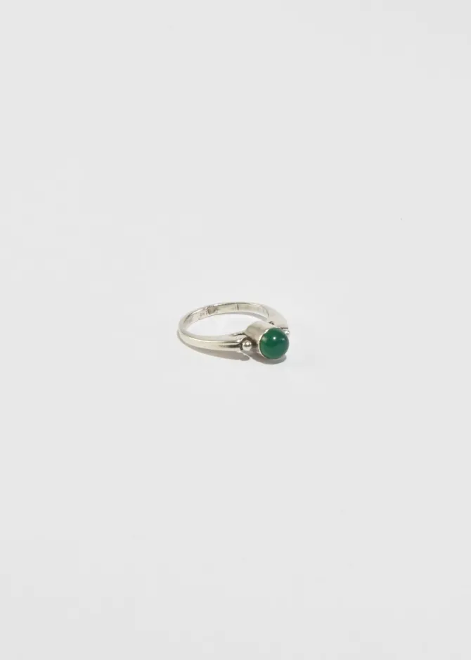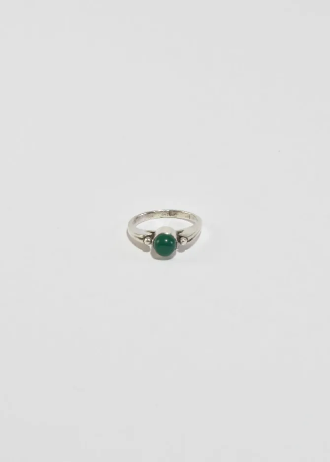 Vintage, sterling ring with petite sphere detail and a round jade cabochon.