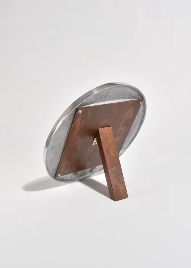 Large, sculptural picture frame in pewter. Fits a 5.5 x 5.5″ photo.
