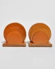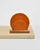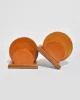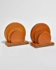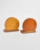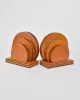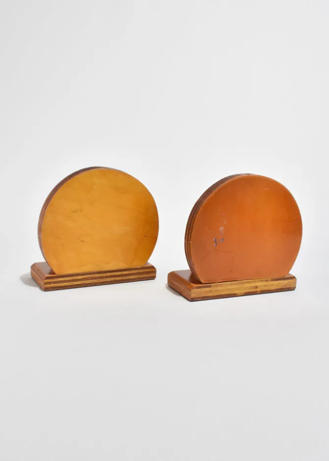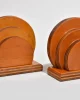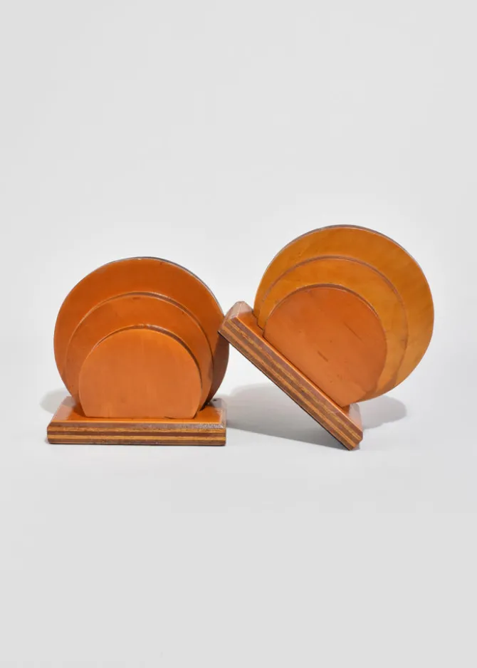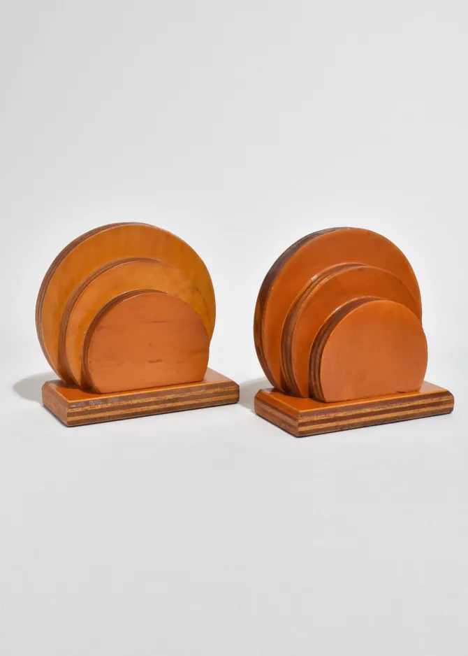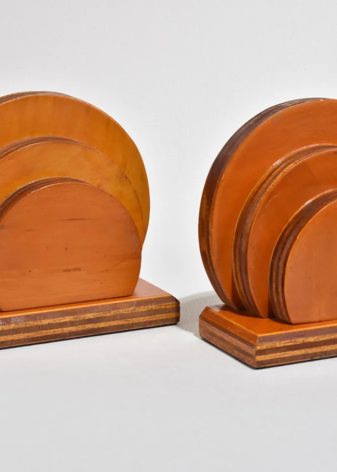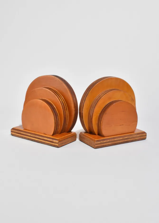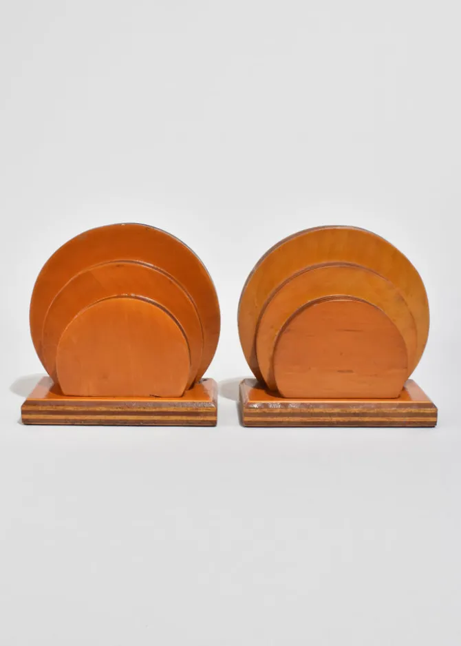 Sculptural wooden deco bookends in a rounded form with blue felt base, set of two.