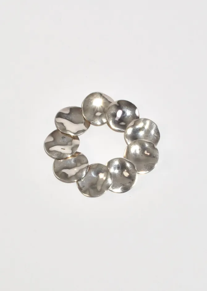 Vintage, sterling bracelet with sculptural disc links and magnetic closure. Signed,ESPO925.