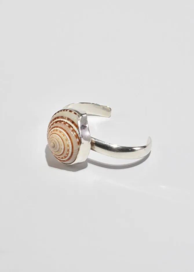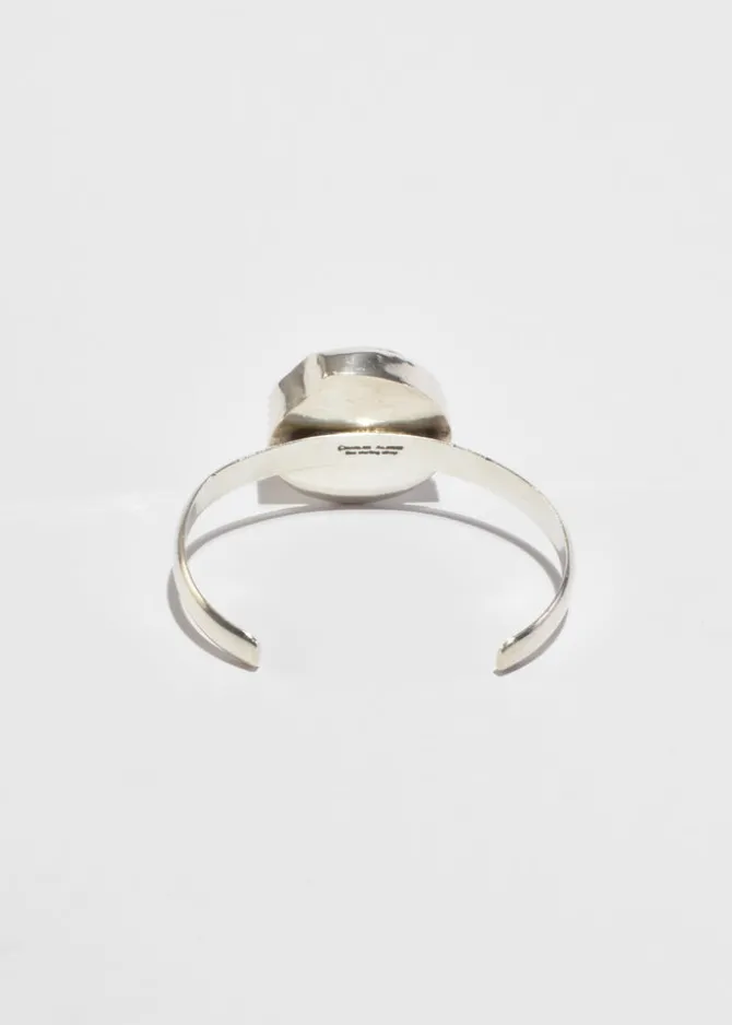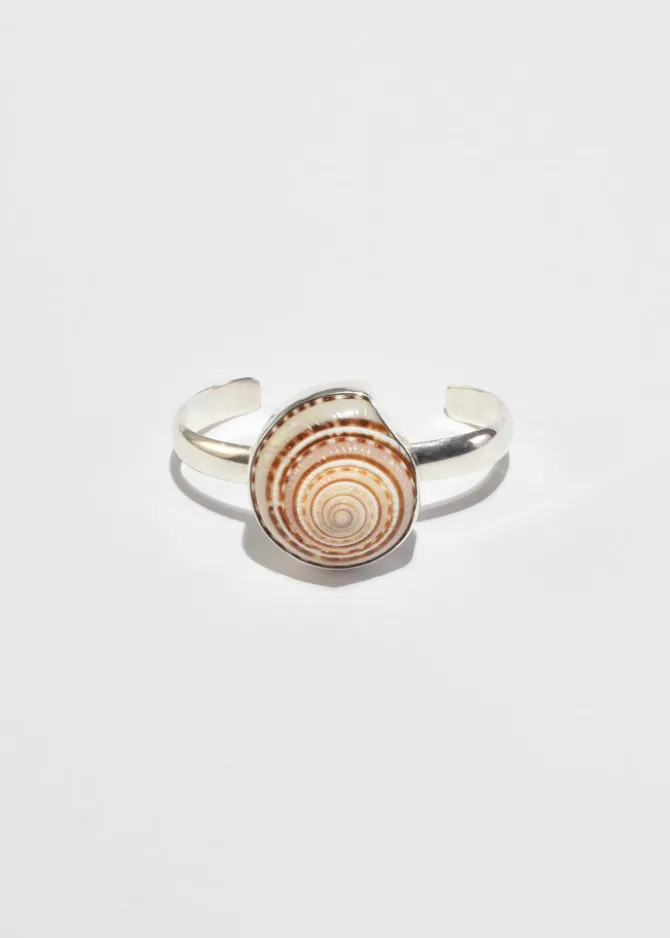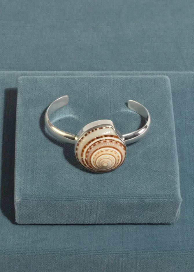 Rare, vintage sterling cuff bracelet with a beautiful operculum shell. Stamped,Charles Albert Fine Sterling Silver.