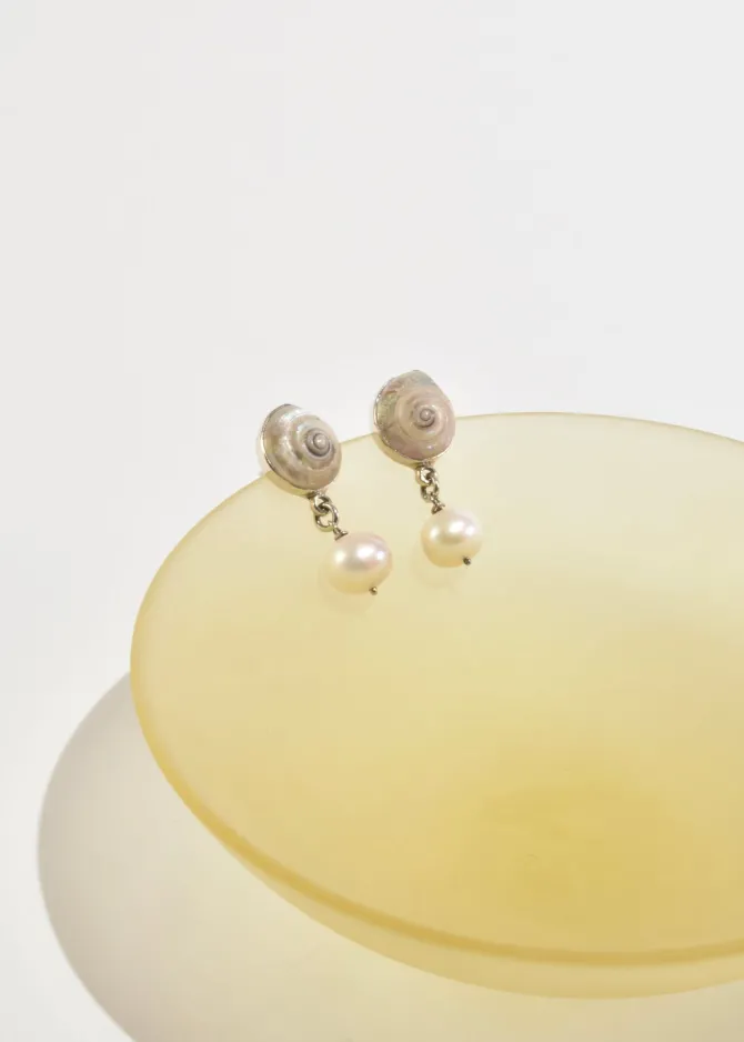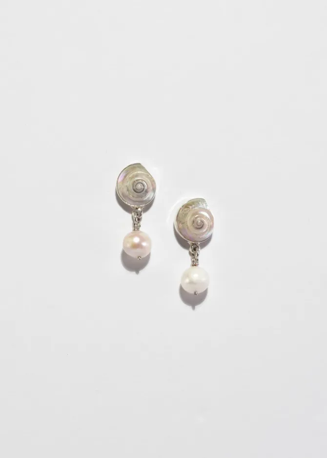 Beautiful sterling earrings with nautilus shells and pearl drop detail, pierced. Stamped,925.