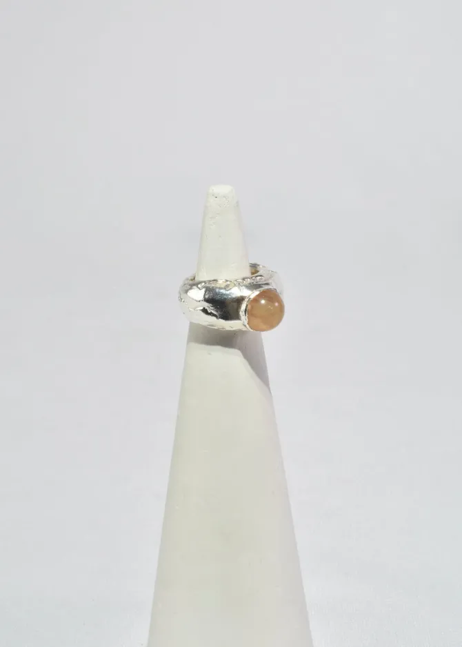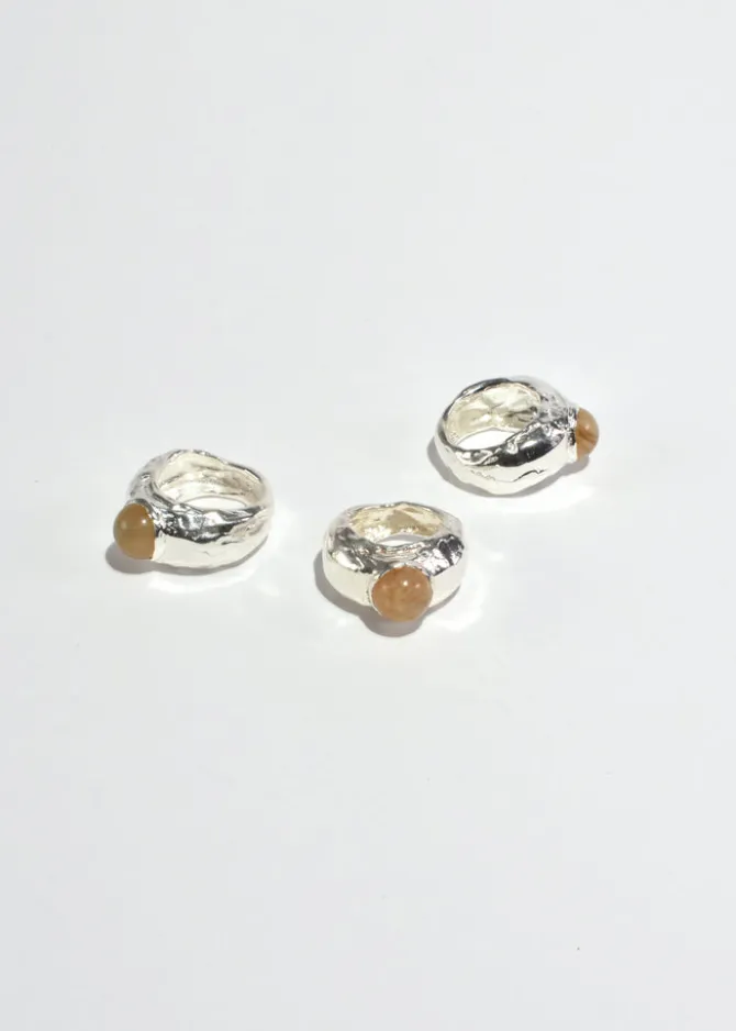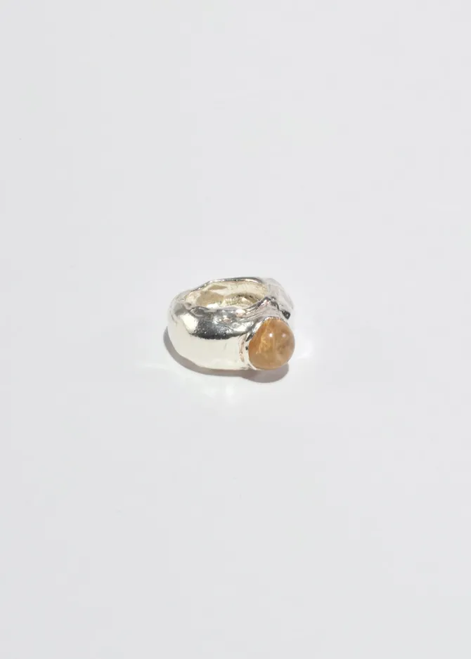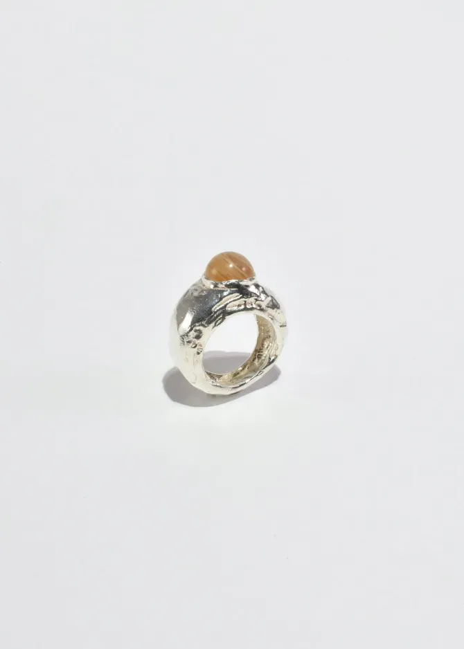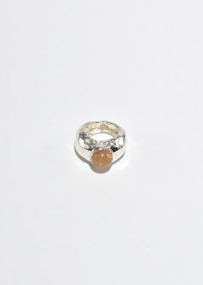 Handmade silver organic shaped ring with a coffee crystal cabochon. Handcrafted in Valencia, Spain bySimuero.