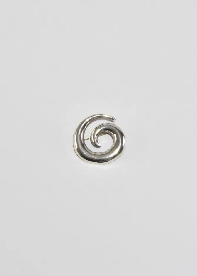 Vintage, sculptural sterling brooch in the shape of a spiral with pin-back closure. Stamped,925.