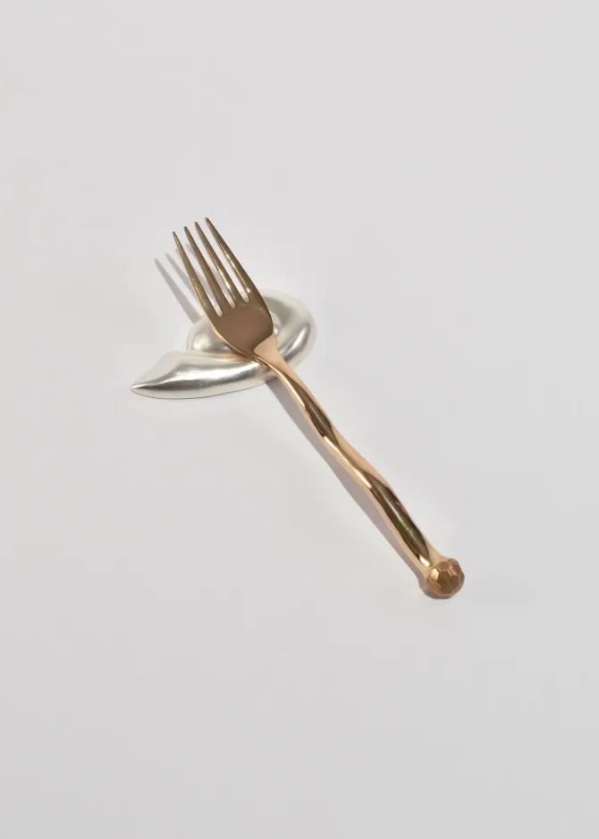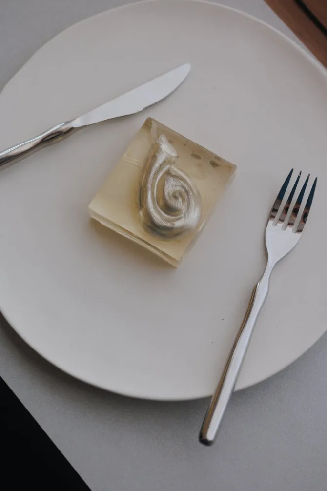 Beautiful ceramic trumpet shell cutlery rest in a silver glaze. By IAAC Crafts ceramic studio, made in South Korea.