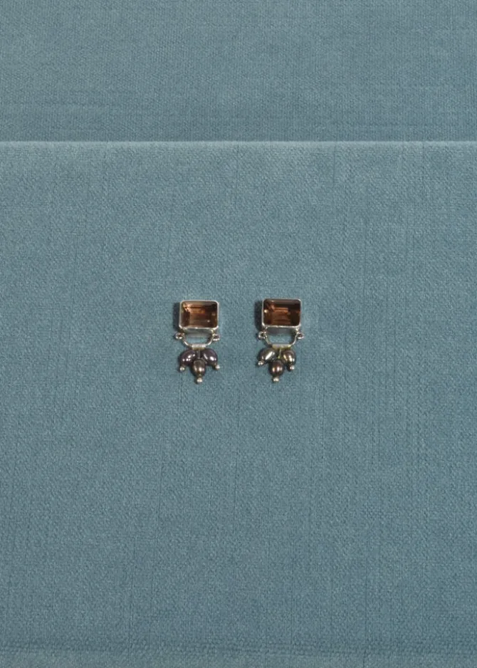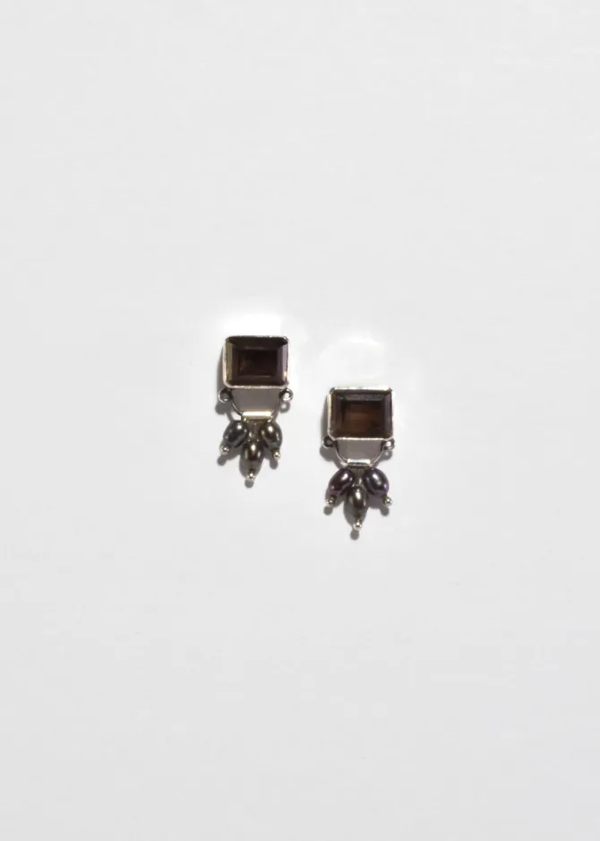 Beautiful, vintage sterling earrings with faceted smoky quartz stones and grey freshwater pearls, pierced. Stamped,Lenova 925.