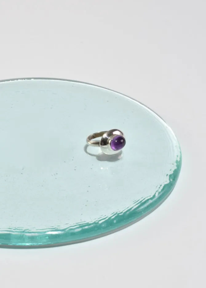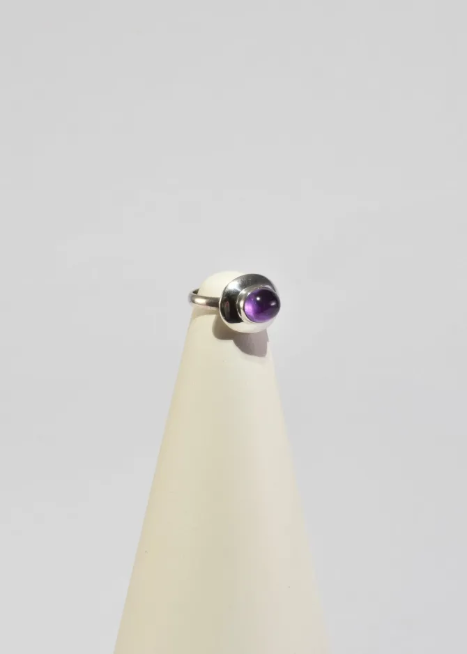 Classic, vintage sterling ring with an oval amethyst cabochon. Stamped,925.