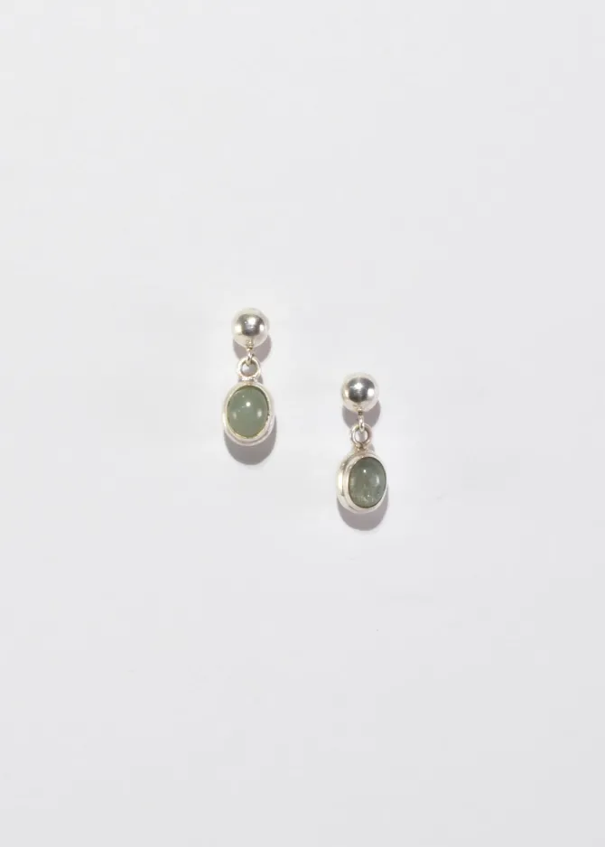 Classic, vintage sterling earrings with double sided aventurine cabochon detail, pierced.