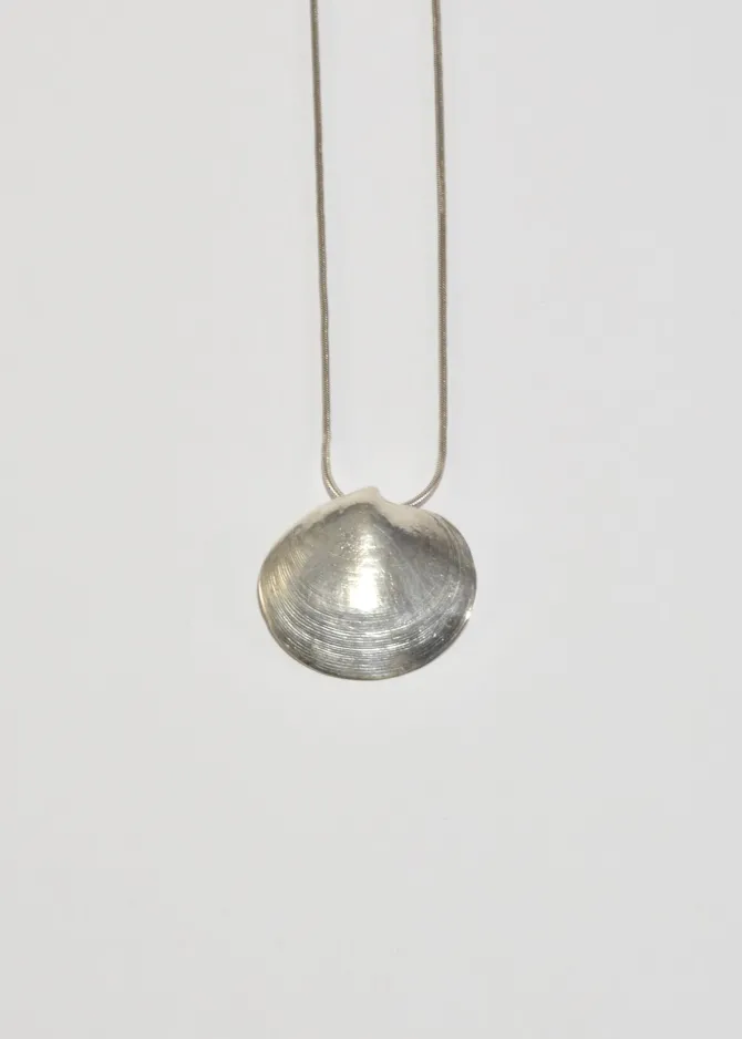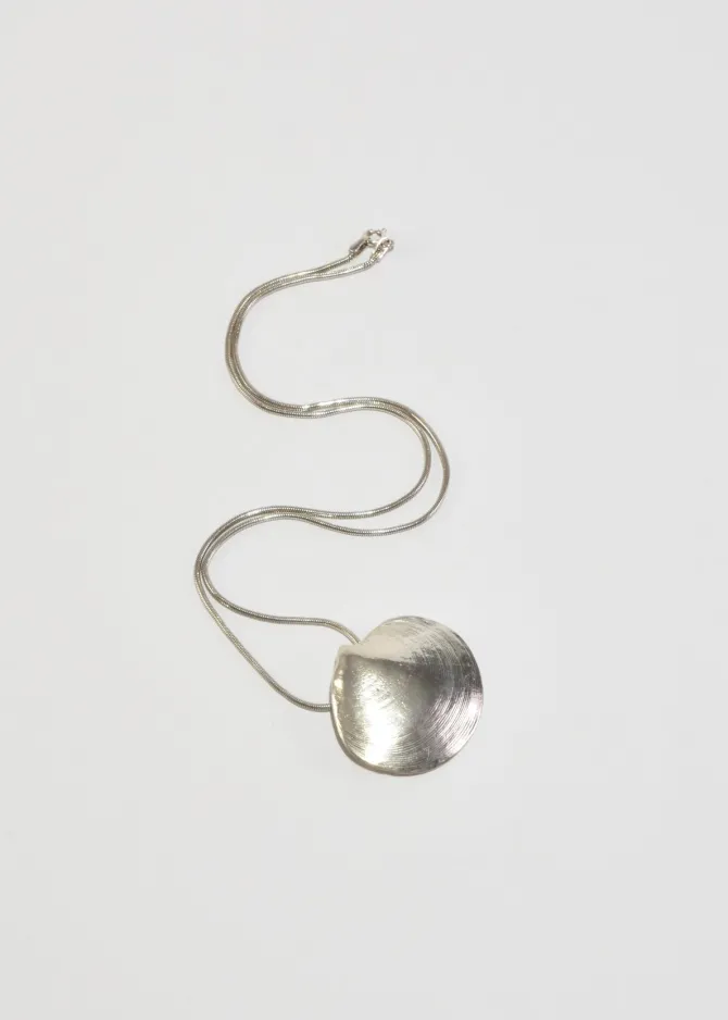 Beautiful, vintage sterling necklace with a sculptural clam shell pendant, clasp closure. Stamped,Mignon Faget.