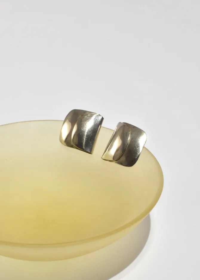 Vintage, sterling earrings in a sculptural folded shape, pierced.
