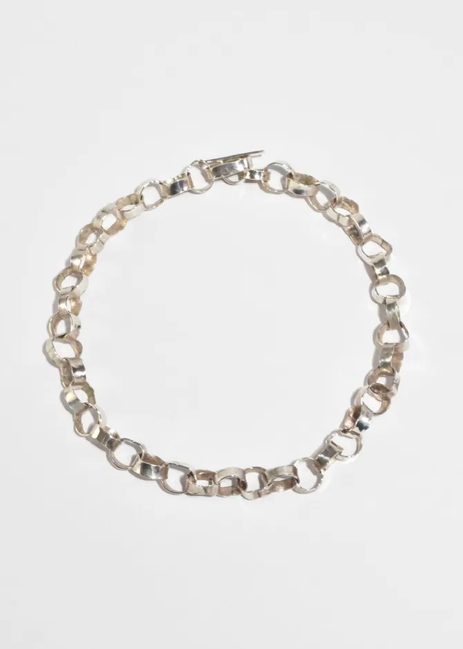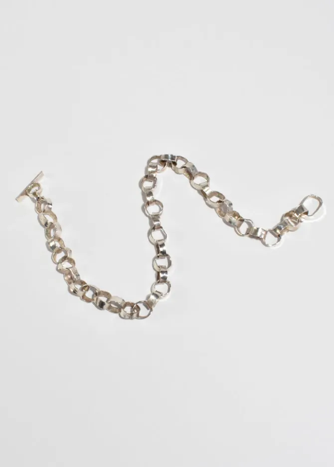 Rare, handmade vintage sterling necklace with organic loop links and toggle clasp closure.