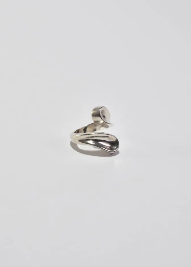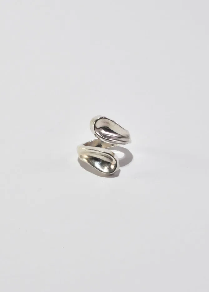 Classic, vintage sculptural sterling wrap ring with teardrop detail. Stamped, Mexico 925.