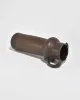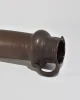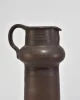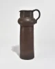 20th century German hand-thrown stoneware pitcher with a deep brown-black matte finish. The form features a tall cylindrical body with a pronounced ridge at the shoulder, a narrow spout, and a single curved handle.