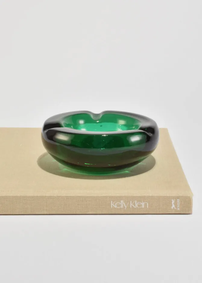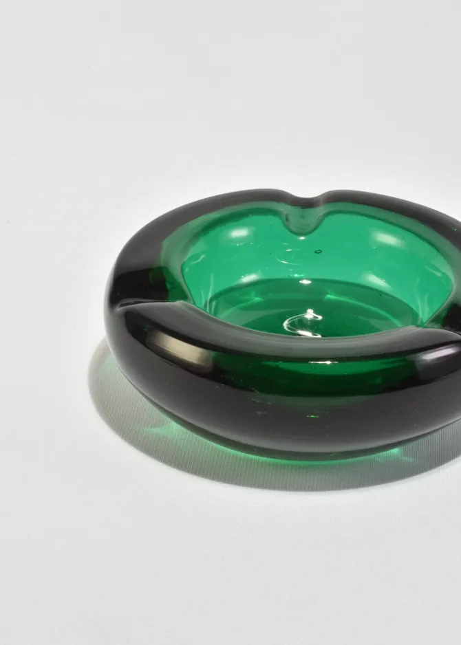 Vintage blown glass catchall or ashtray in a saturated teal. A striking piece for tabletop display, jewelry keeping, or everyday smalls.