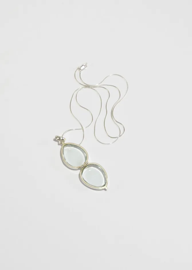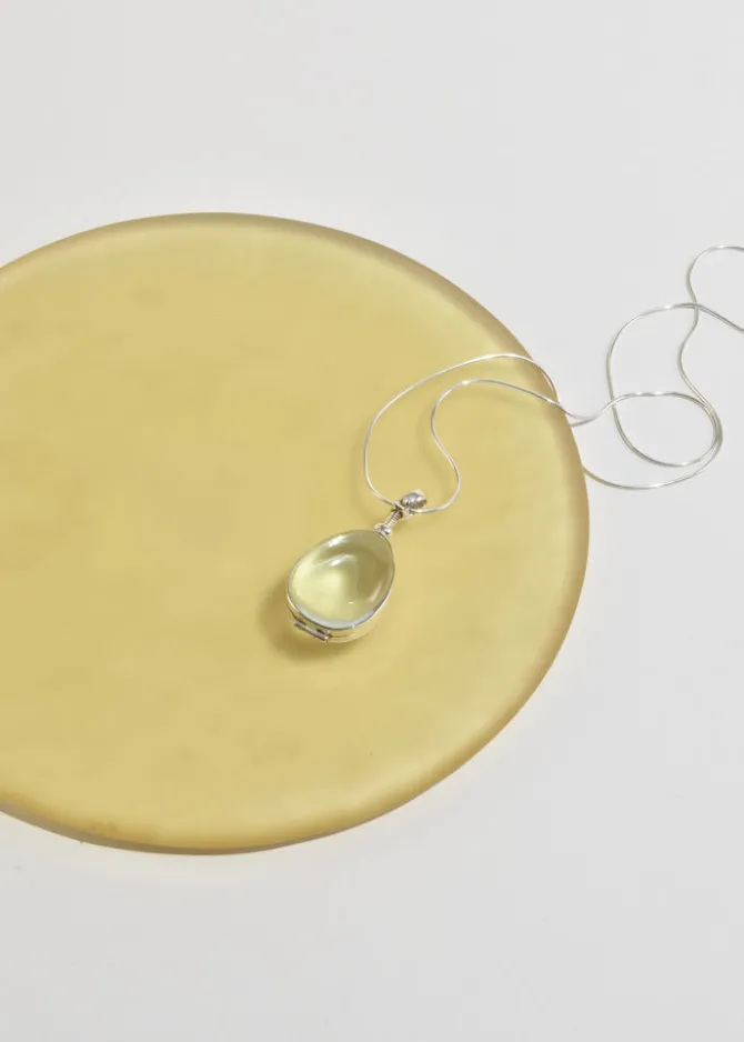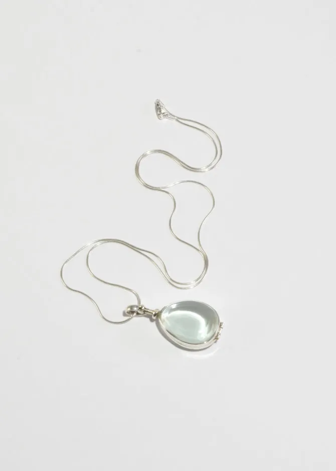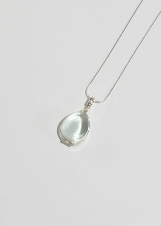 Beautiful sterling necklace with a teardrop shaped glass locket pendant, clasp closure. Stamped,925.
