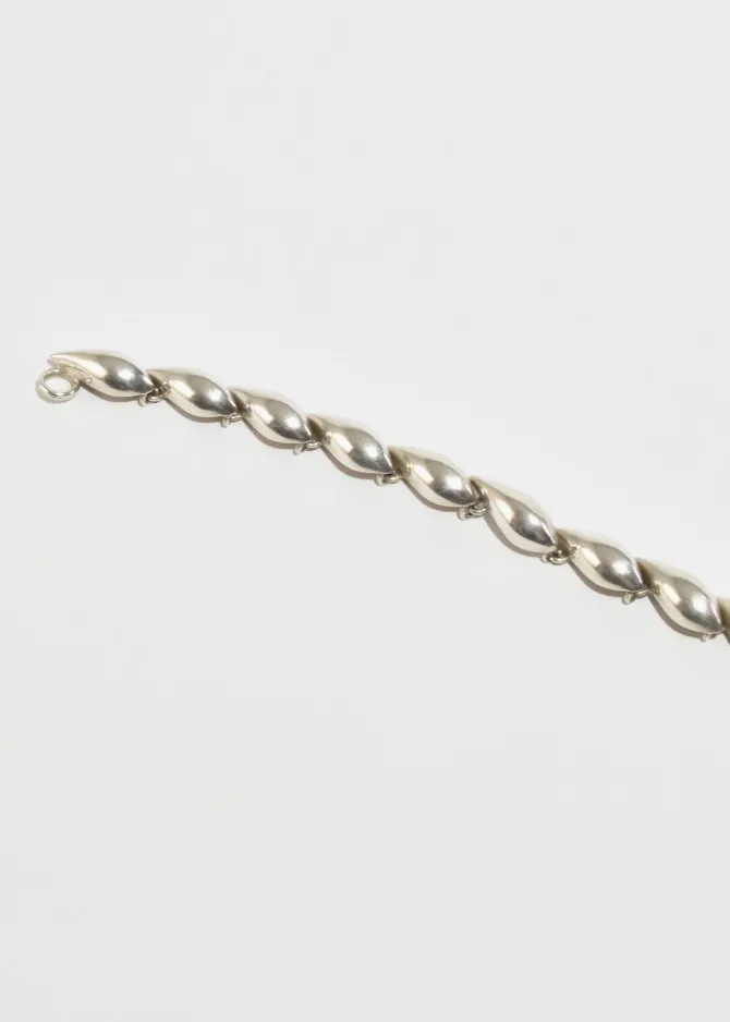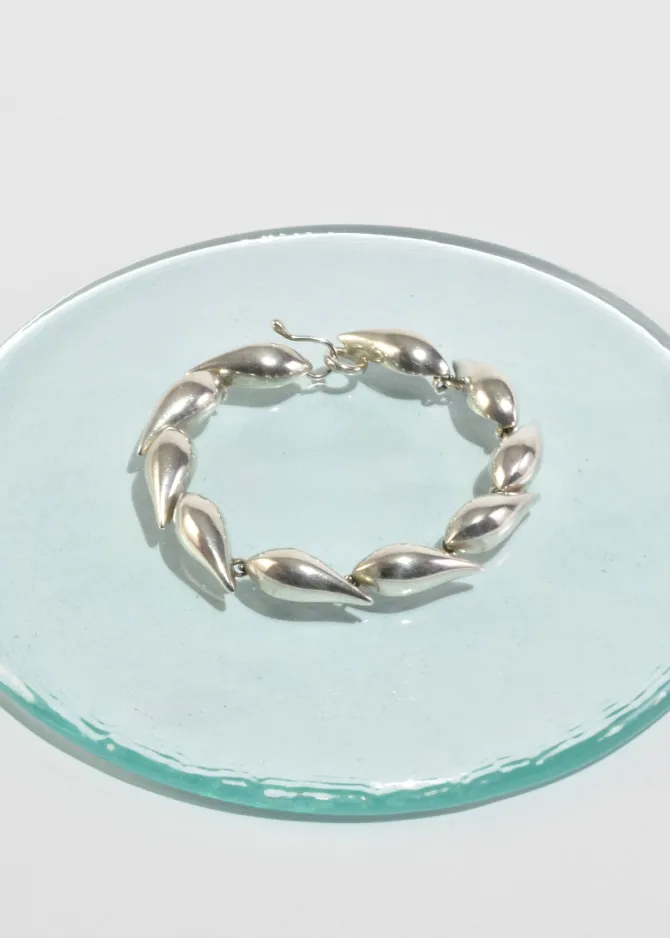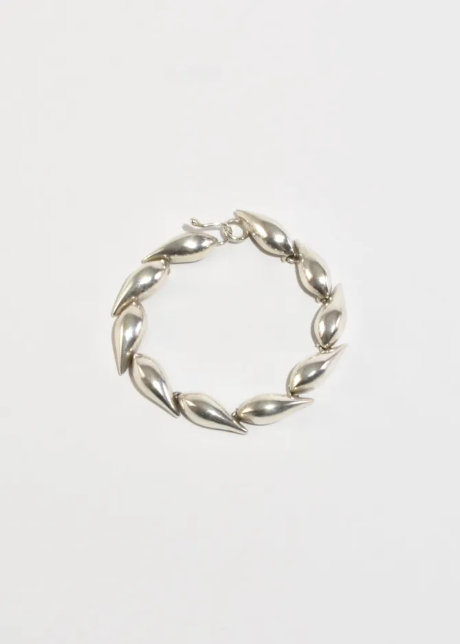 Classic, vintage sterling bracelet with sculptural teardrop links and hook and eye closure.