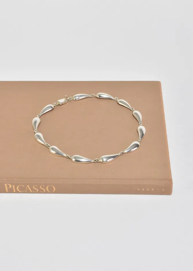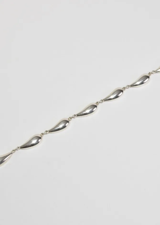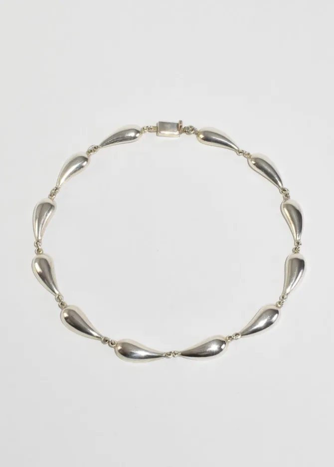 Stunning, vintage sterling necklace with sculptural teardrop links and box clasp closure. Stamped, Mexico 925.