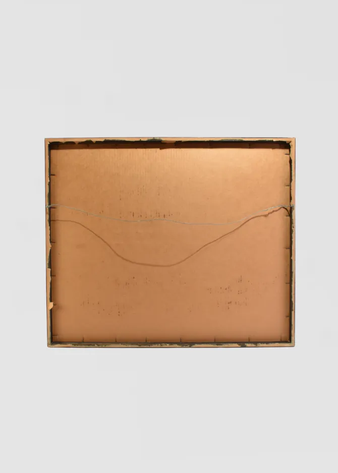 Presented under glass in a black frame with a deep gray mat and wire on the backside.