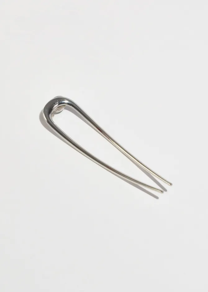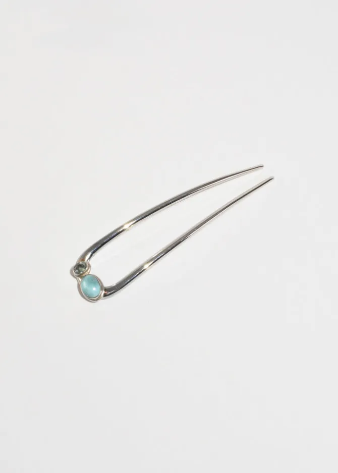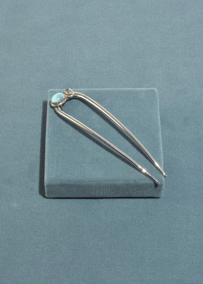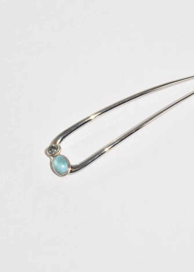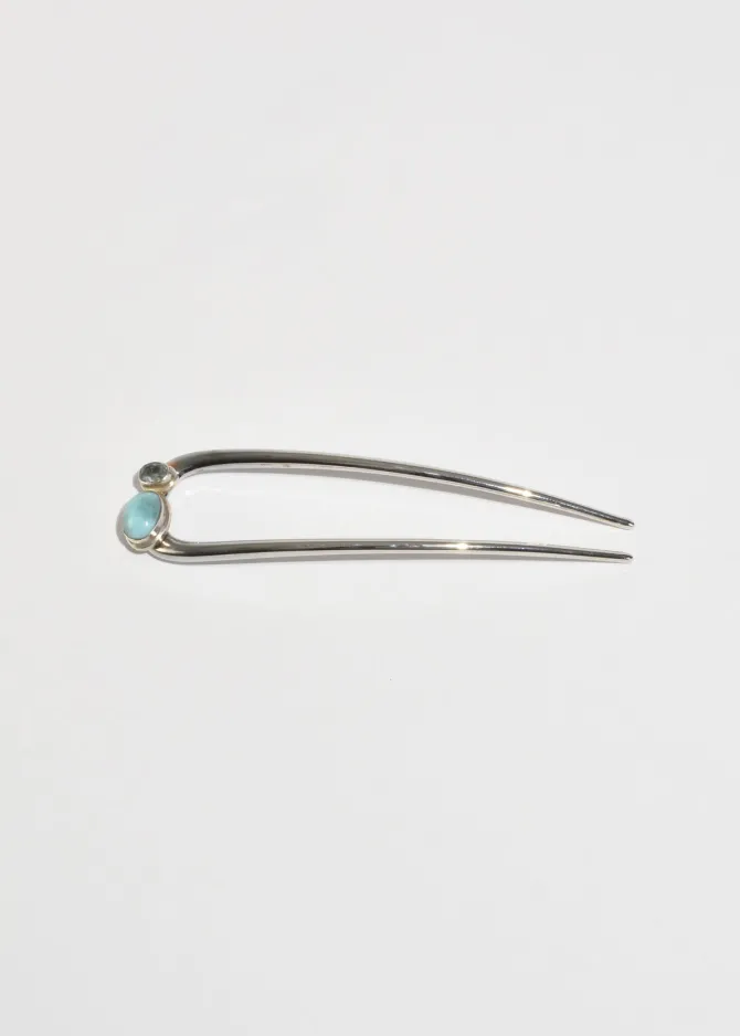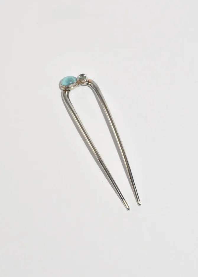 Beautiful, oversized vintage sterling hair pin with a turquoise cabochon and faceted blue topaz stone in a sterling setting.
