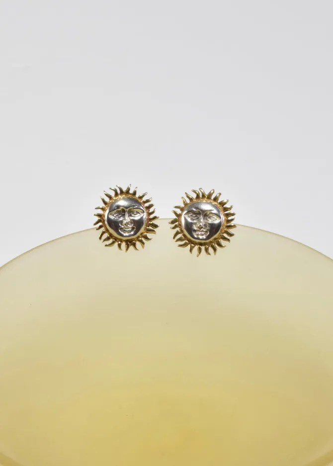 Vintage two-tone earrings in the shape of a sun with face detail, pierced. Stamped,Sterling 925.