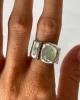 Handmade silver organic shaped ring with a green prehnite cabochon. Handcrafted in Valencia, Spain by Simuero. Stamped 925.