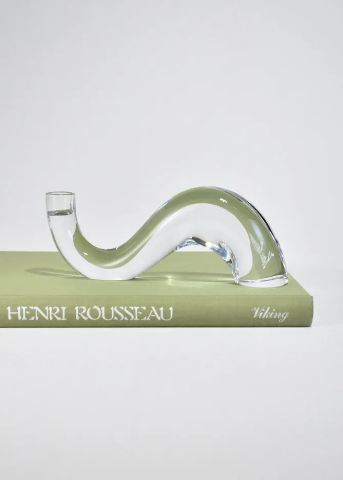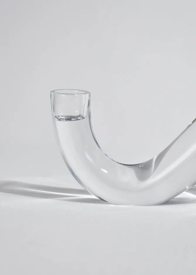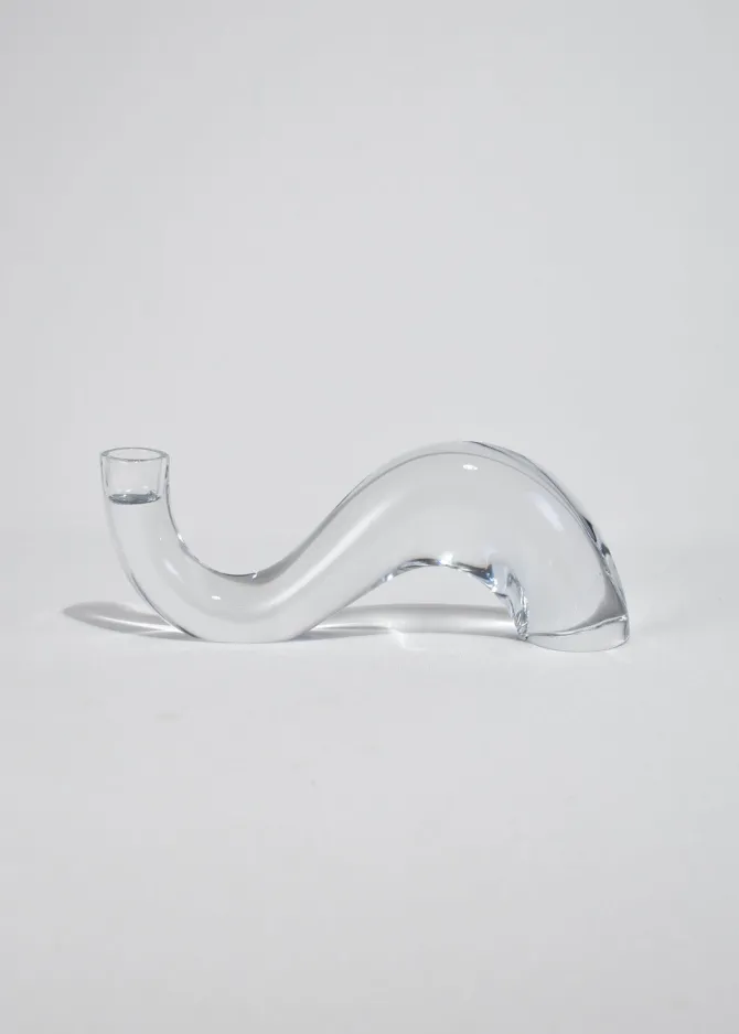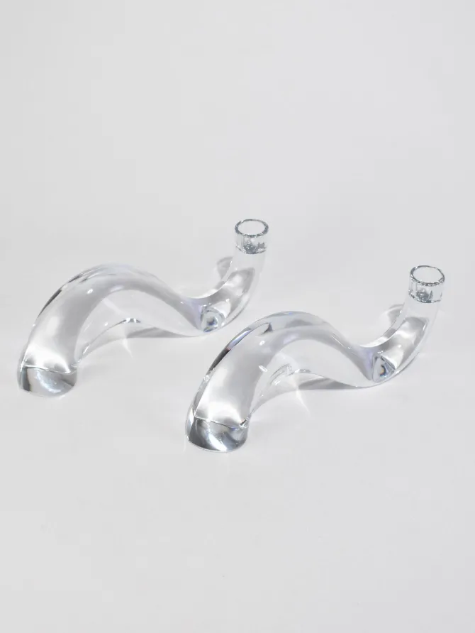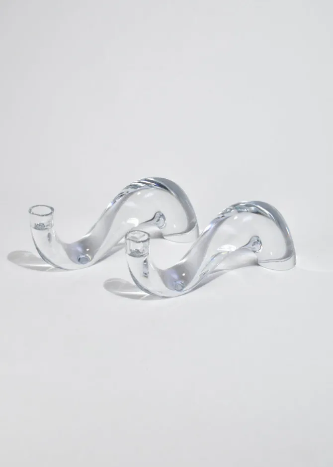 Sculptural thick glass candleholder set of two in a wave shape. Stamped on base, Rosenthal Studio-Line.