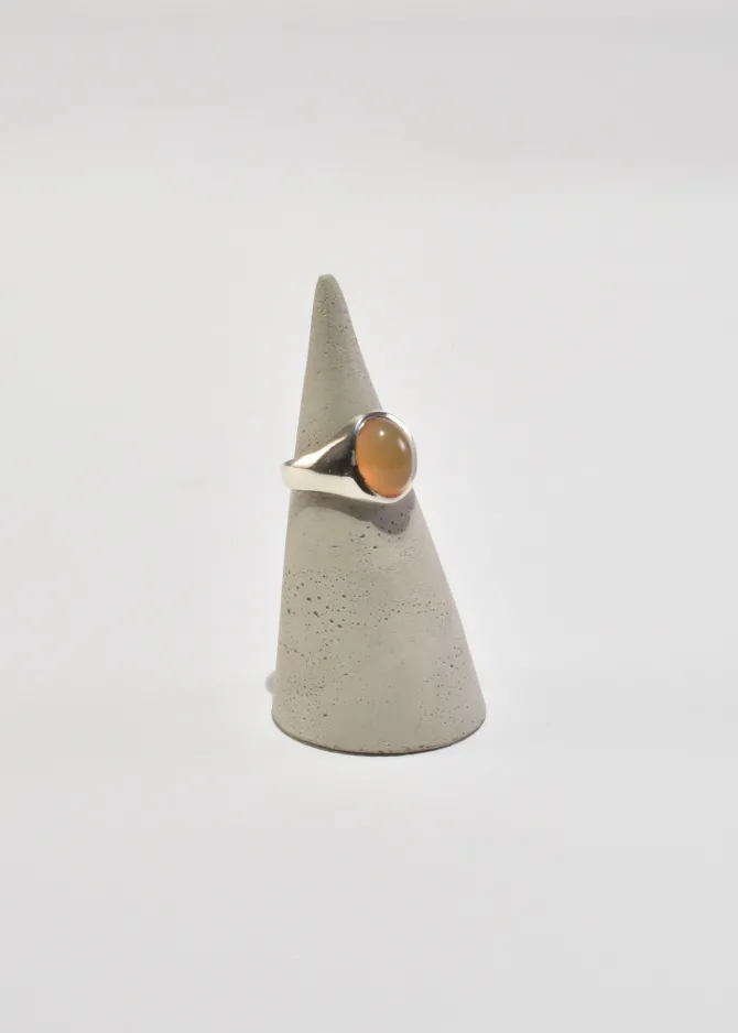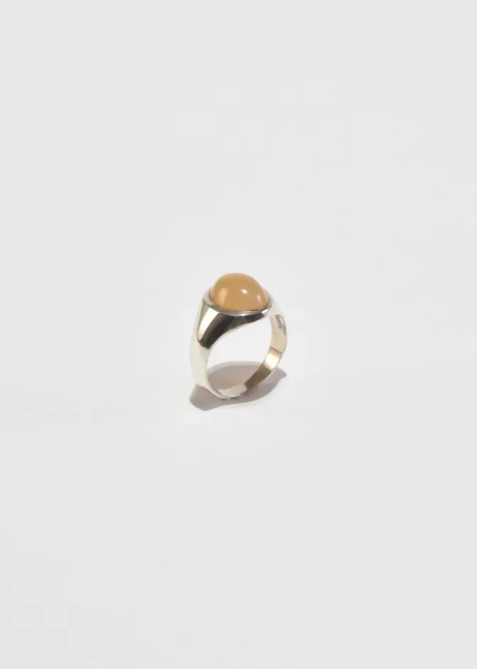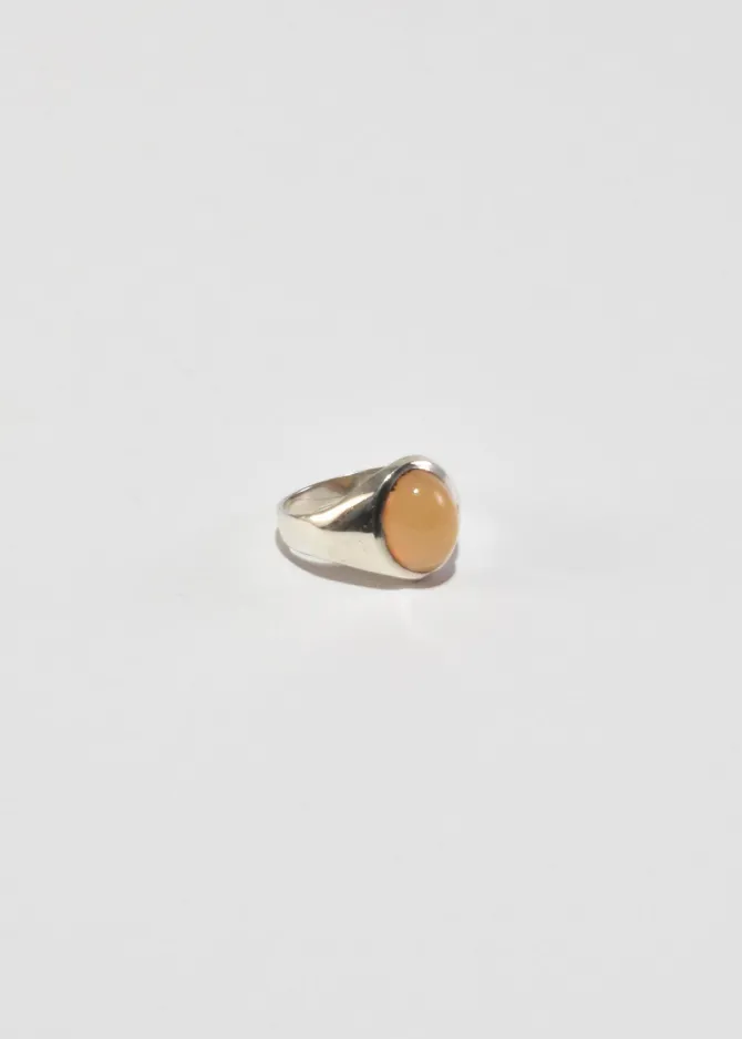 Stunning, vintage 18k white gold ring with a beautiful oval peach moonstone cabochon. Stamped,715.