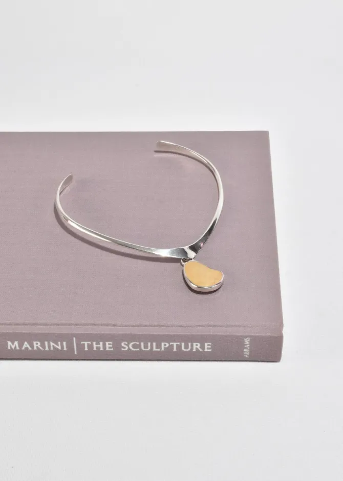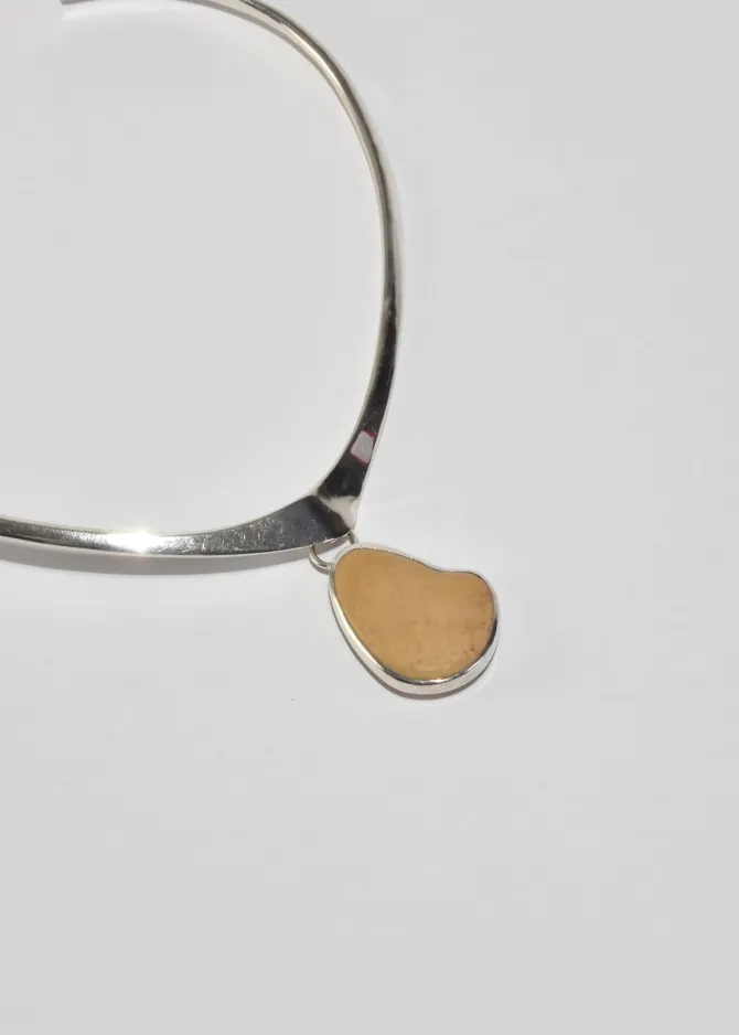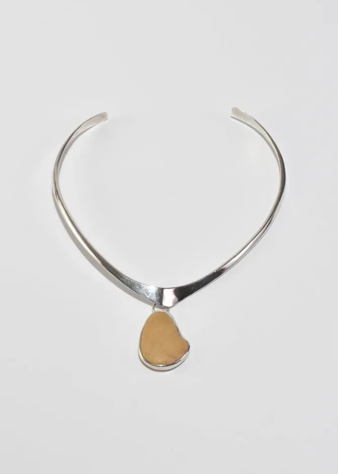 Rare, vintage sterling collar necklace with an organic shaped yellow jasper pendant. Stamped,Sterling SR.